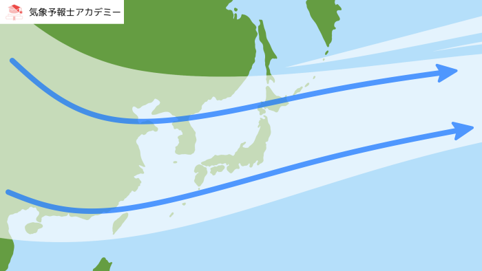 - 蛇行する: まっすぐに吹くのではなく、南北に大きく蛇行(蛇行)しながら流れます。