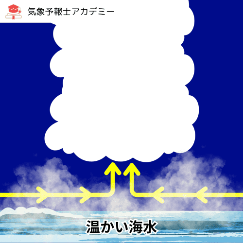1. 潜熱の放出: JPCZでは強い収束によって背の高い積乱雲が激しく発達します。水蒸気が凝結して雲(水滴・氷晶)になる際に大量の「凝結潜熱」を放出するため、大気が暖められます。