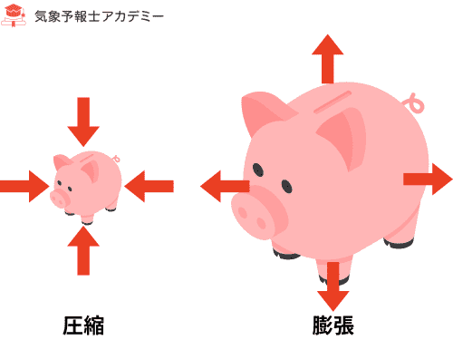 気体は押されると縮み、膨らむと外へ押し返します。