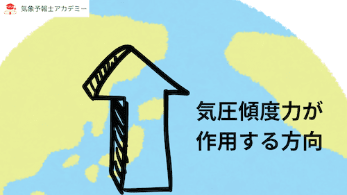 このため、地上の気圧傾度力は、常に高圧(寒冷)から低圧(温暖)へと向かいます。