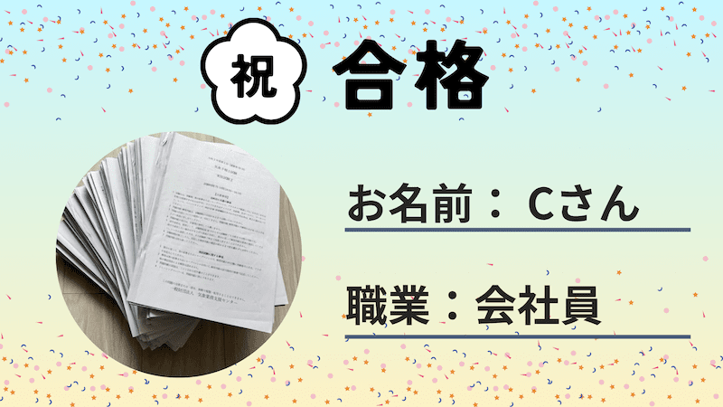 2025年1月から受講を開始されたCさん(会社員)から、2025年8月試験の合格体験記をいただきました。