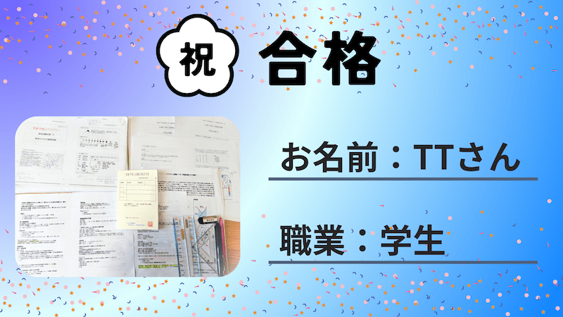 2025年3月から受講を開始されたTTさん(学生)から、2025年8月試験の合格体験記をいただきました。