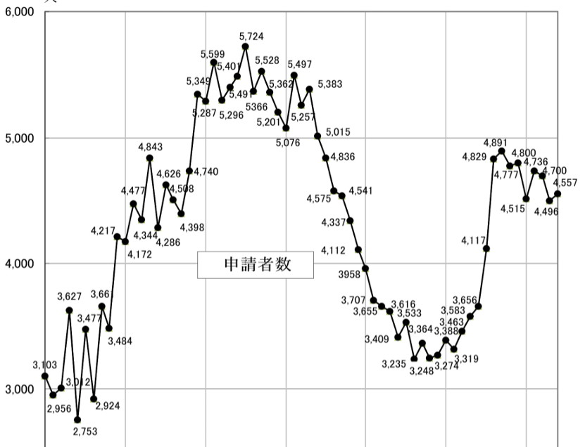 気象予報士試験の申請者数の推移